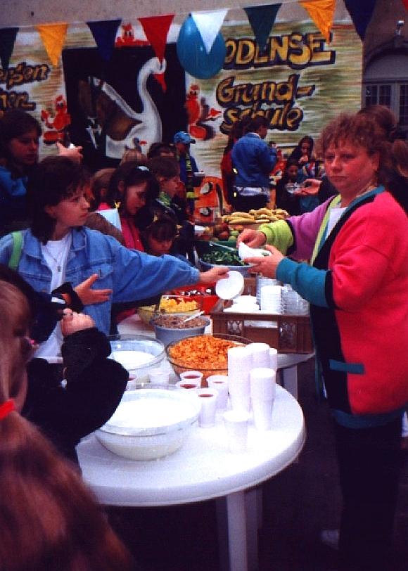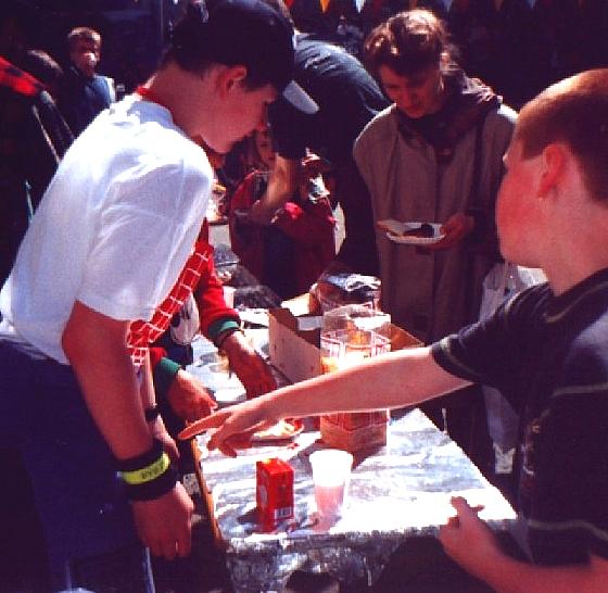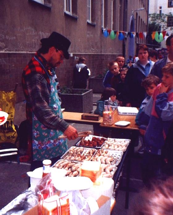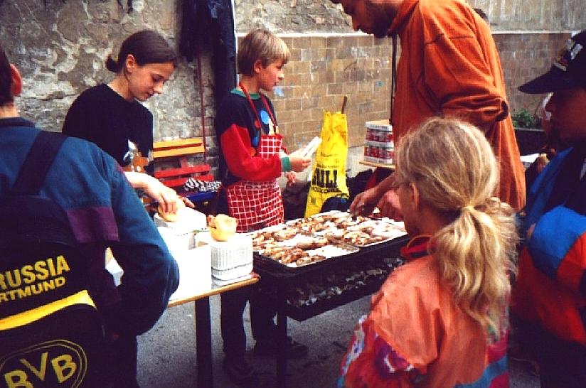 die Schlange nicht beirren. Zum Schluss hatten sie 400 Bratwürste, 100