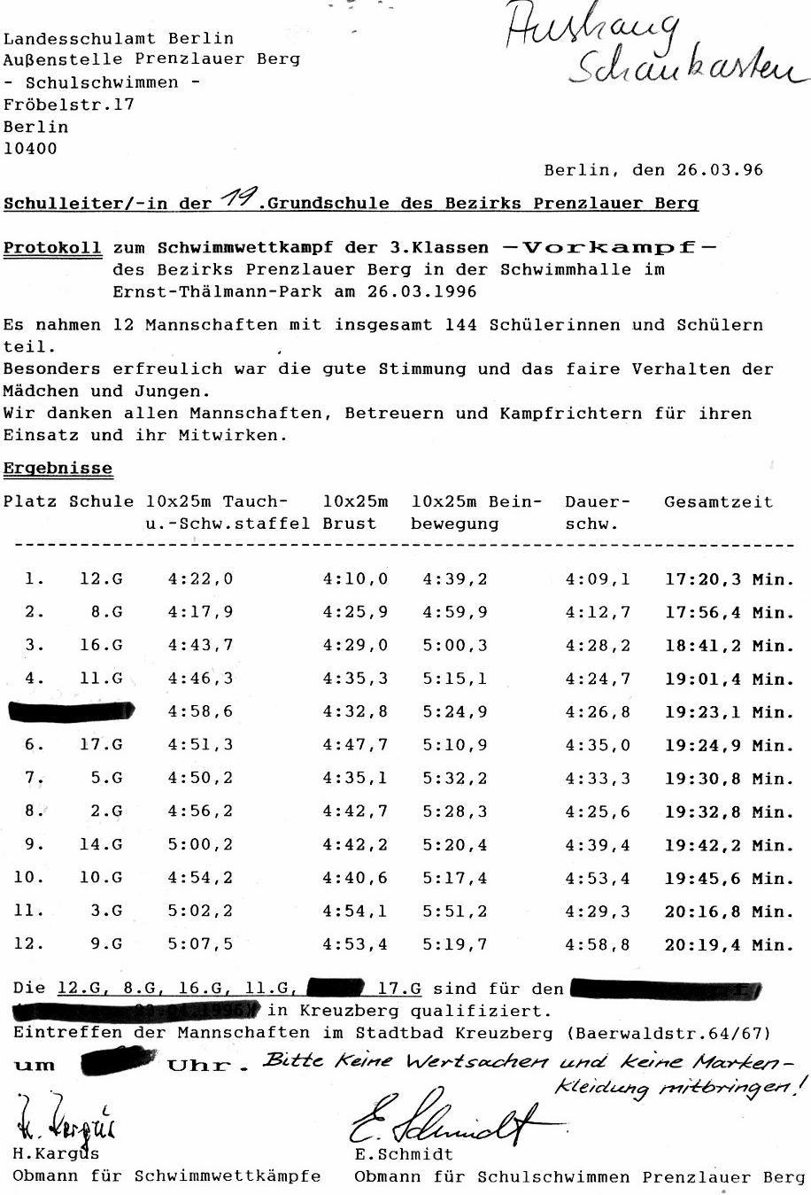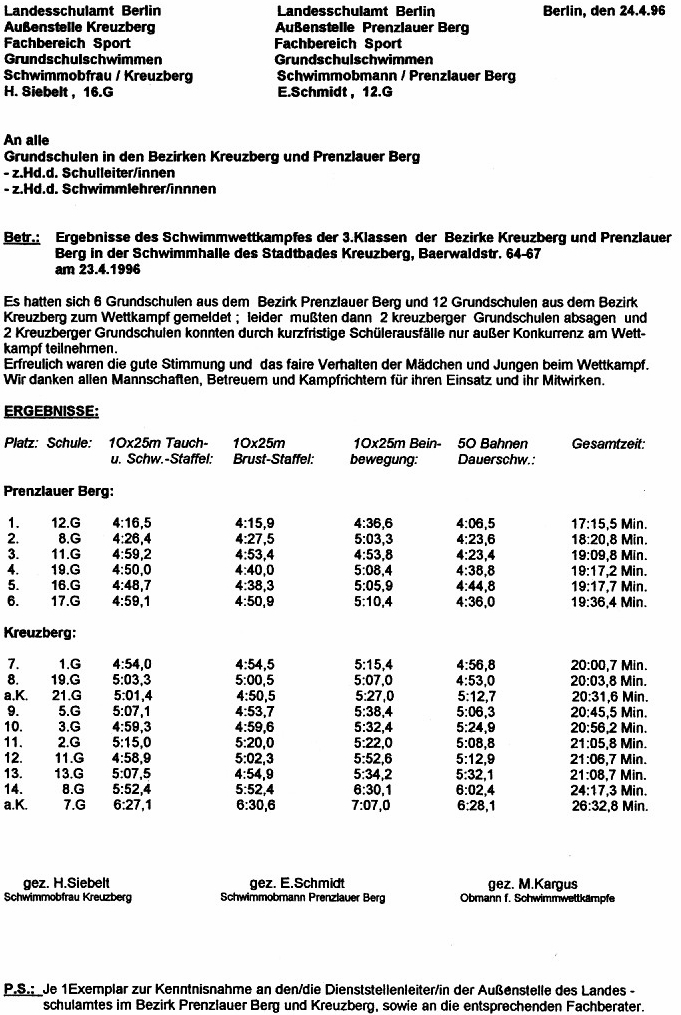 Grundschulschwimmen -  Ergebnisse