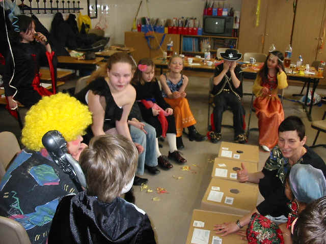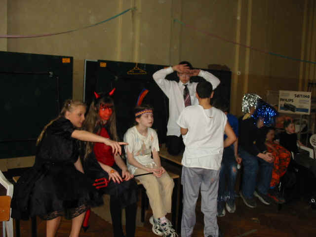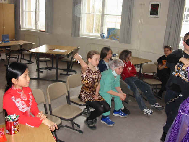 die "besten Kostüme" aus jeder Klasse in der Mitte Platz nehmen
