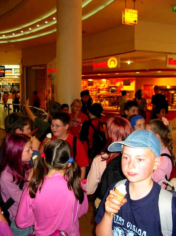 auf dem Weg zur U-Bahn gab es dann eine zweite Frühstückspause als wir schon fast zu Hause waren, gab es Eis ! "Danke - Frau Kellermann!" ![]() ![]() |